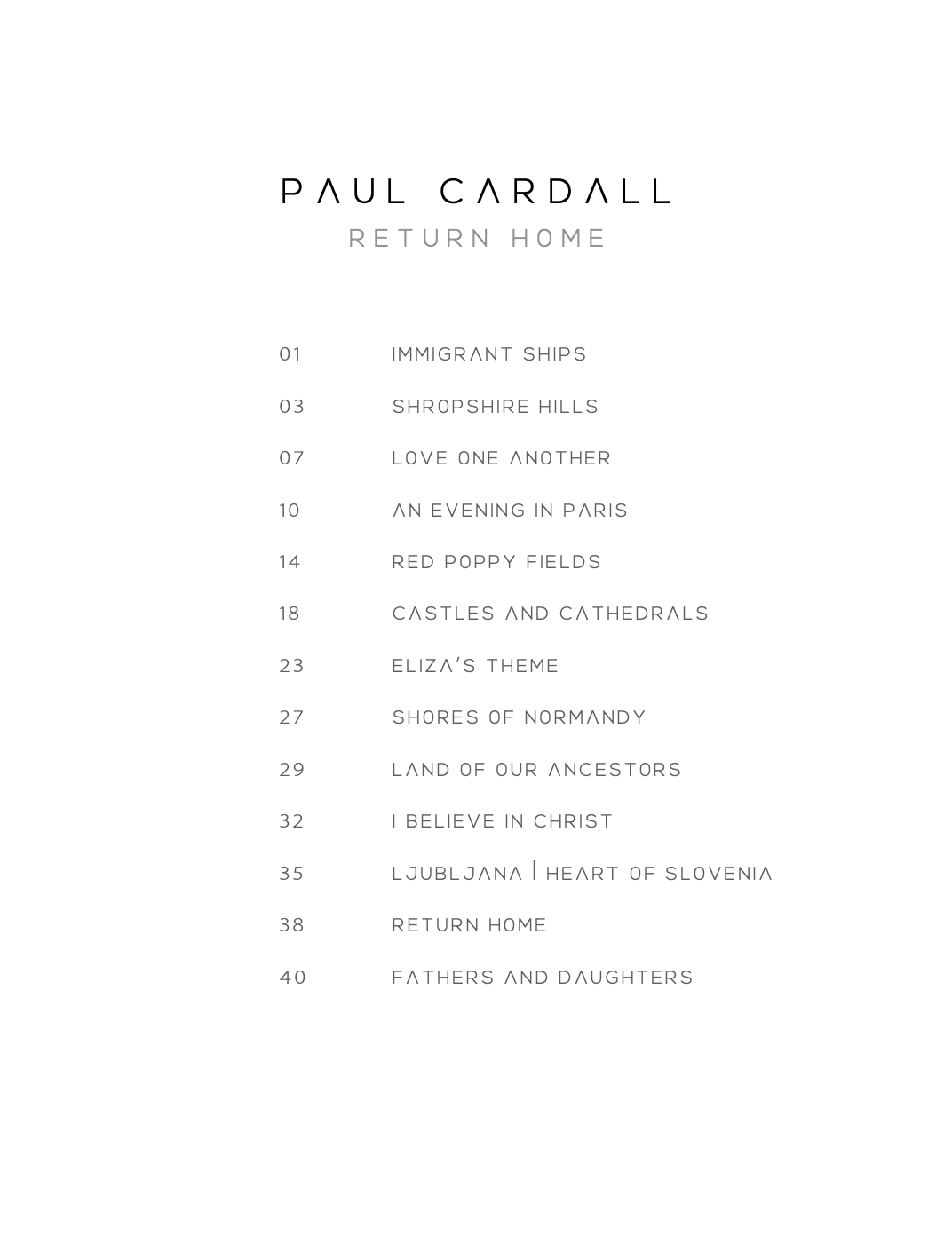 Download the e-songbook. Return Home Solo Piano Version features 13 piano pieces by Paul Cardall for intermediate recital performance.